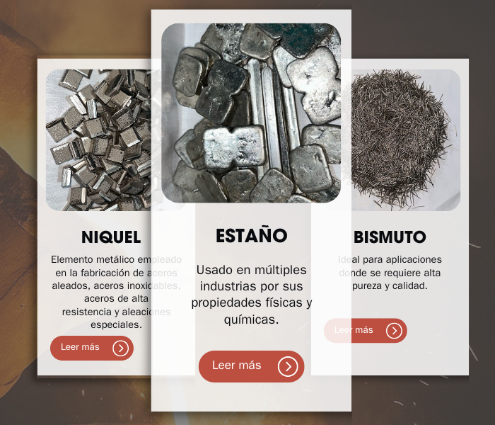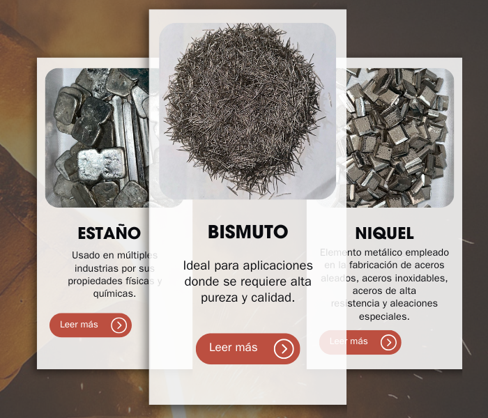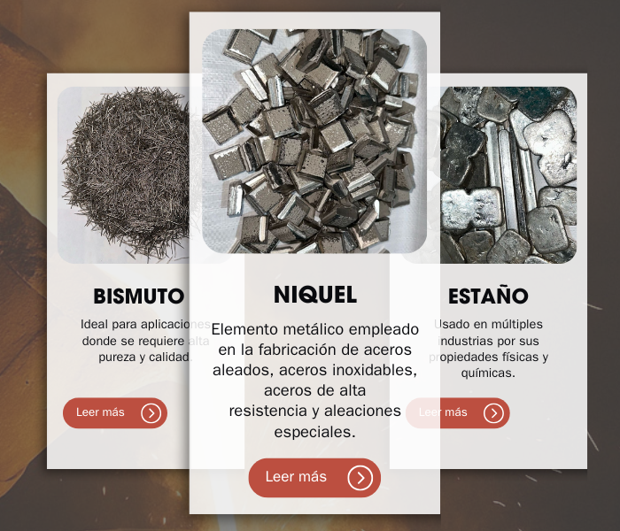 En Maaskab Comercializadora, somos aliados estratégicos de la industria del galvanizado, ofreciendo una línea completa de metales de alta pureza como bismuto, estaño, zinc, níquel, entre otros. Cada uno de nuestros productos está cuidadosamente seleccionado para garantizar rendimiento, durabilidad y eficiencia en tus procesos productivos.